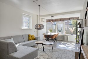 De lichte woonkamer biedt een fijne leefruimte en geeft toegang tot de ruim opgezette tuin op het zuidwesten. Dankzij de uitbouw is er een extra leefruimte ontstaan, wat zorgt voor een prettige en ruime indeling. Vanuit de woonkamer bereik je tevens de derde slaapkamer.