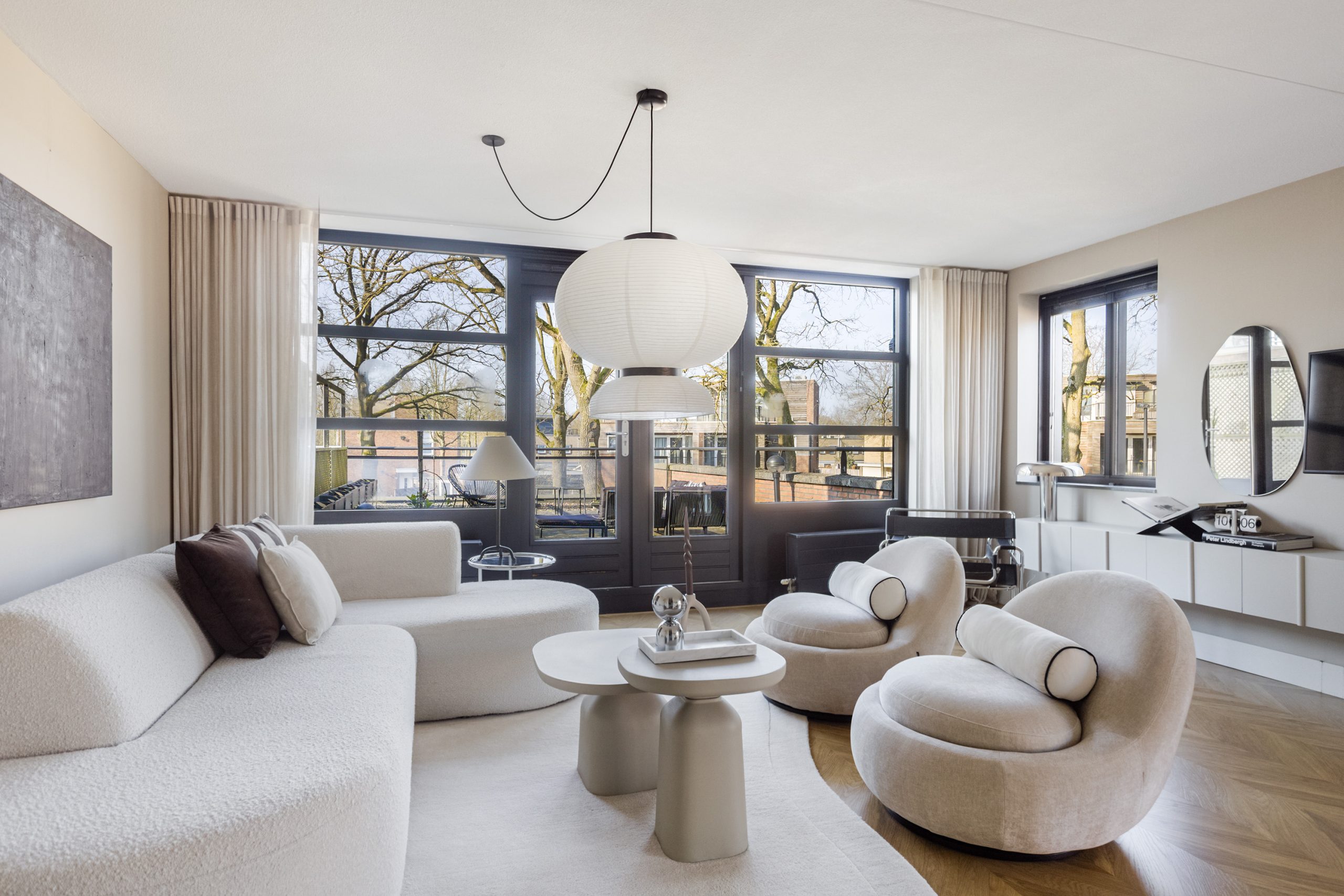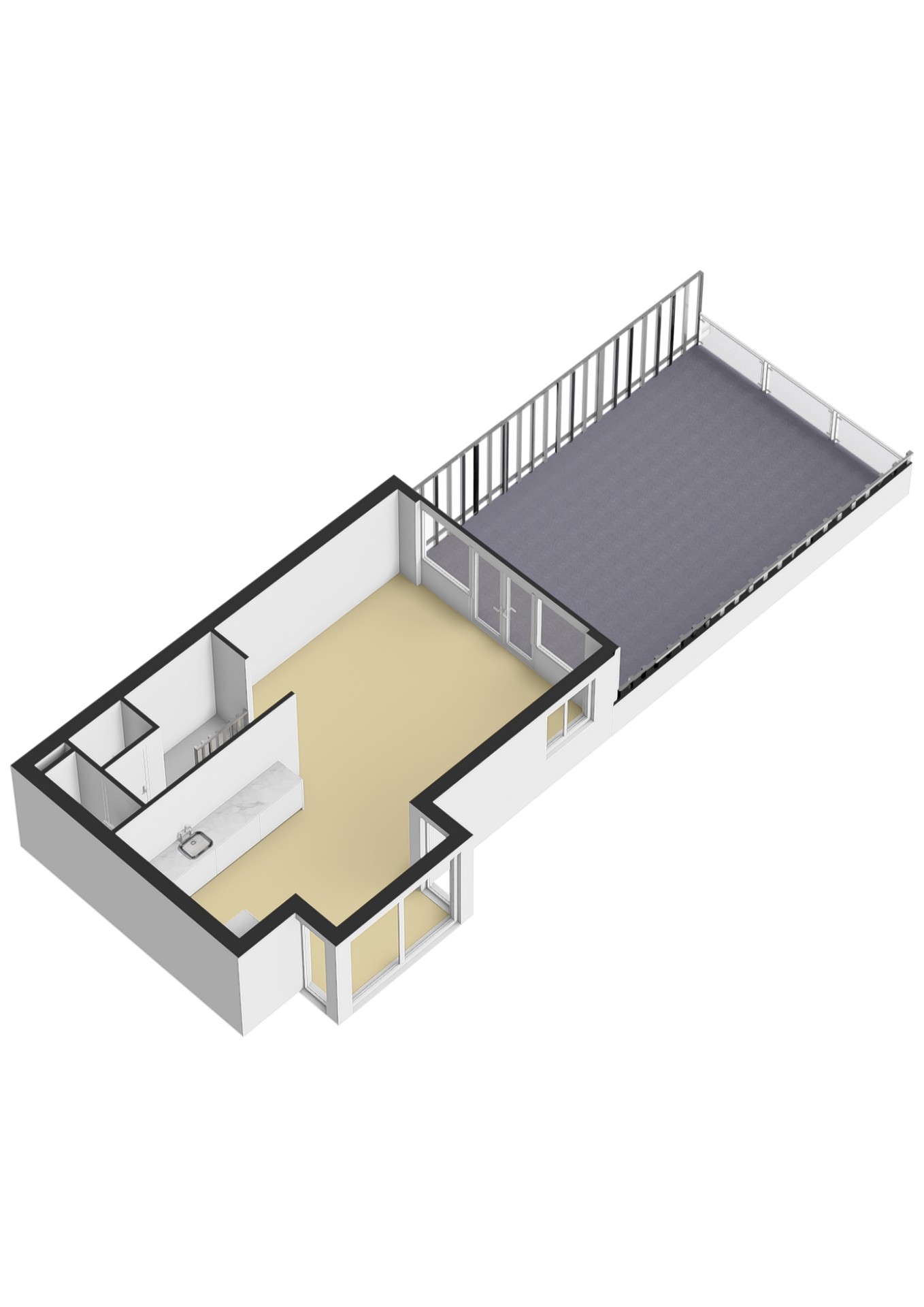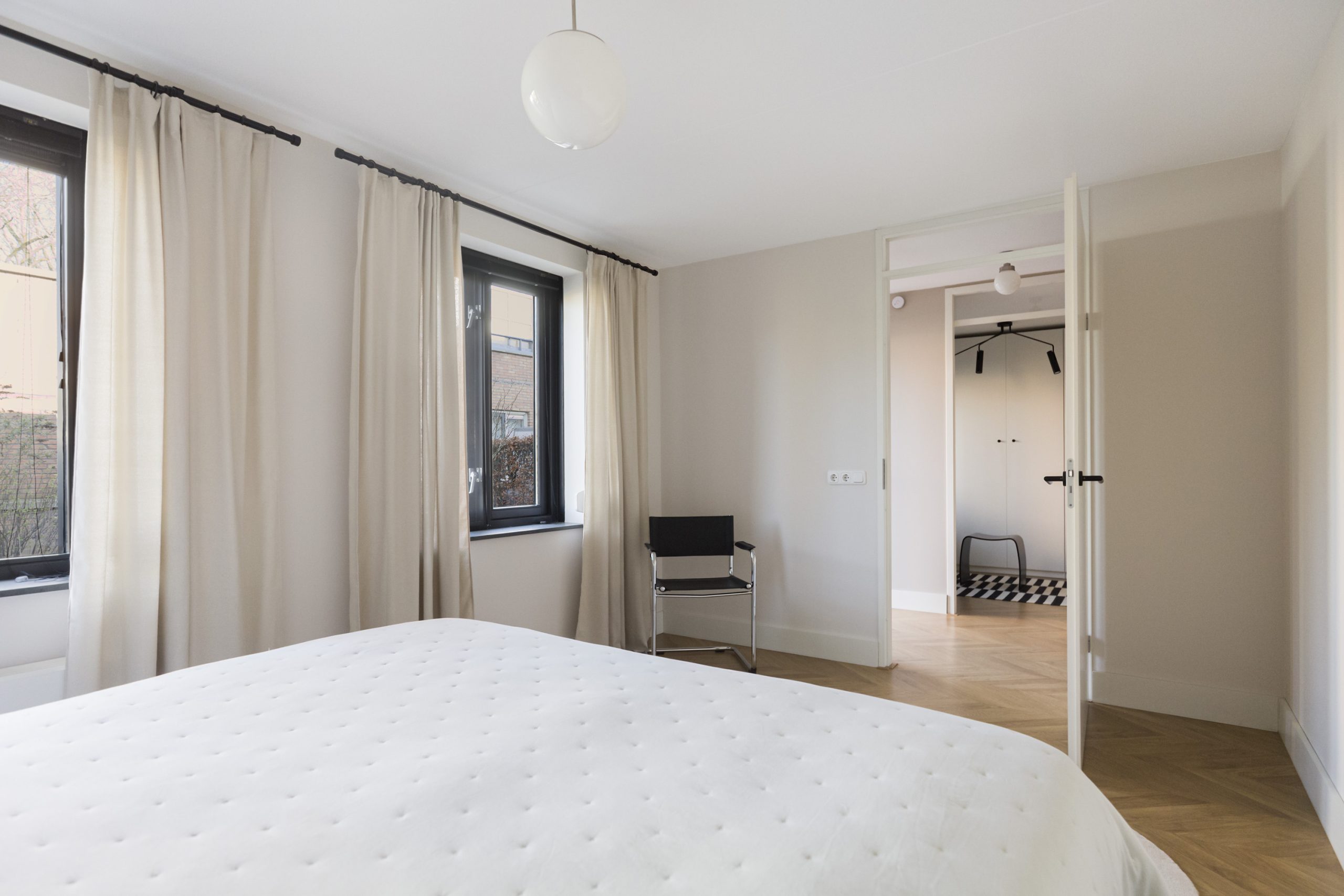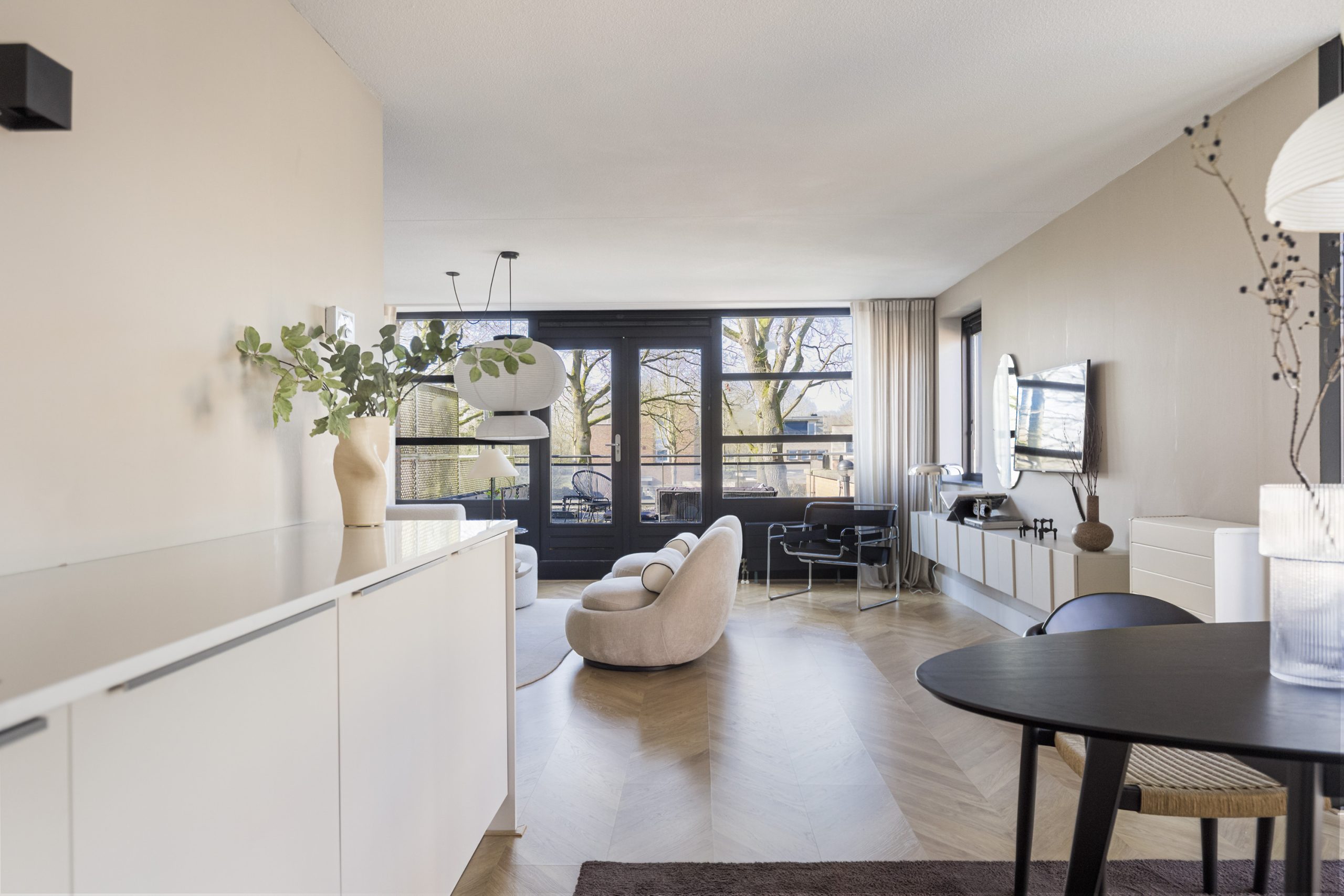 Vanuit de woonkamer geven openslaande deuren toegang tot het royale dakterras, gelegen op het zuidwesten. Hier kun je in alle rust en privacy optimaal genieten van de zon.