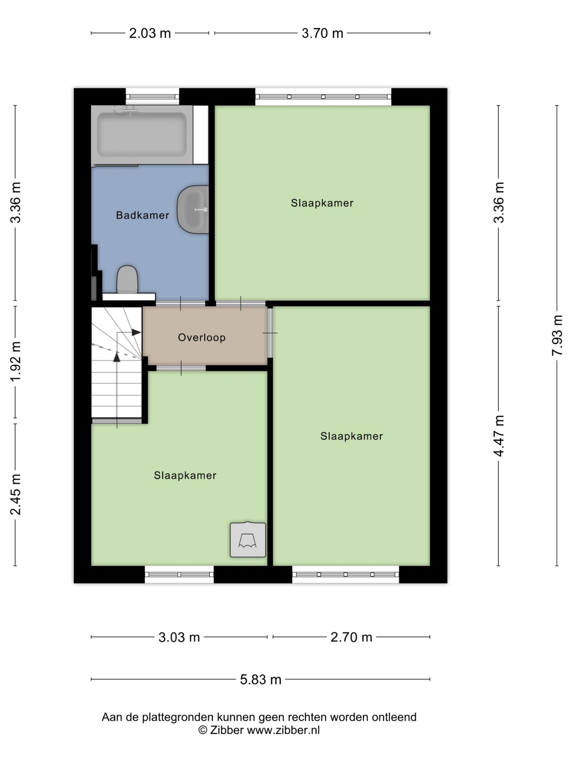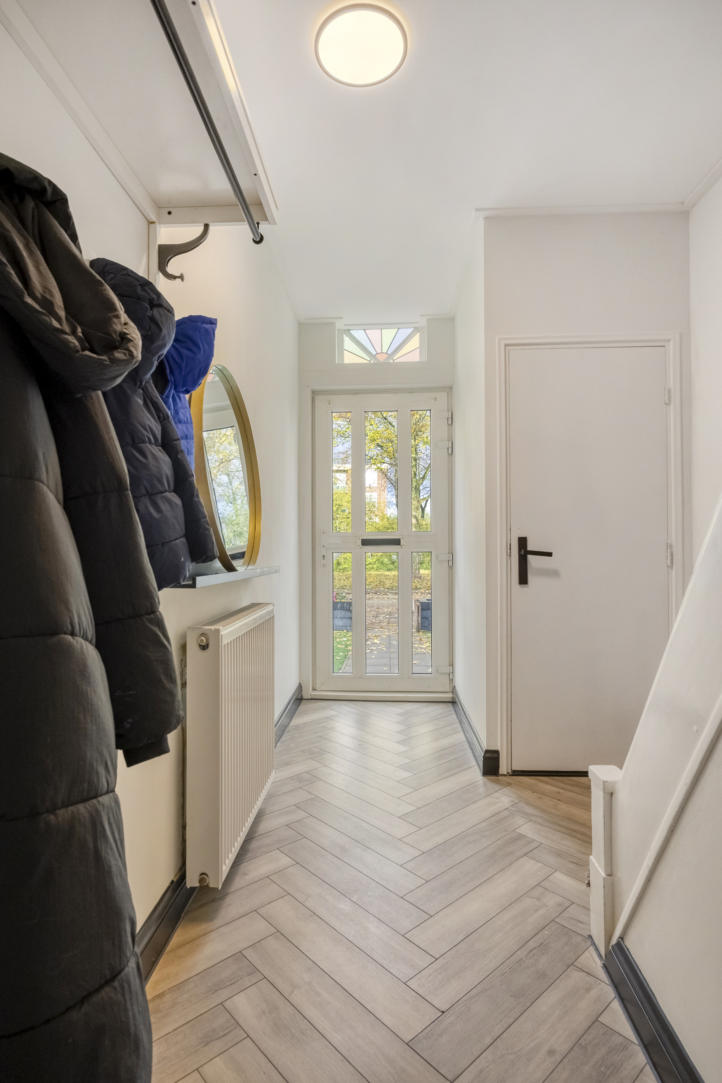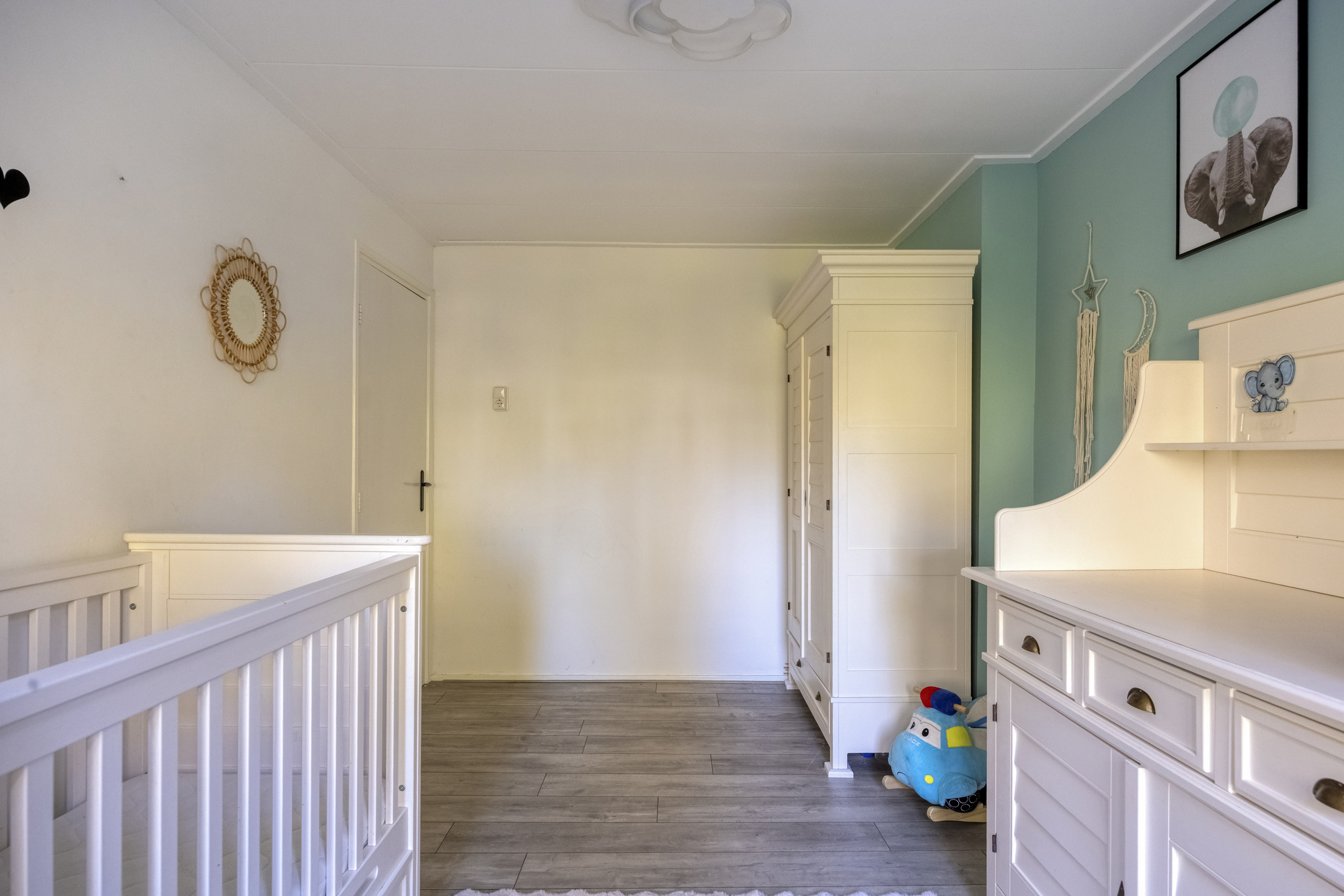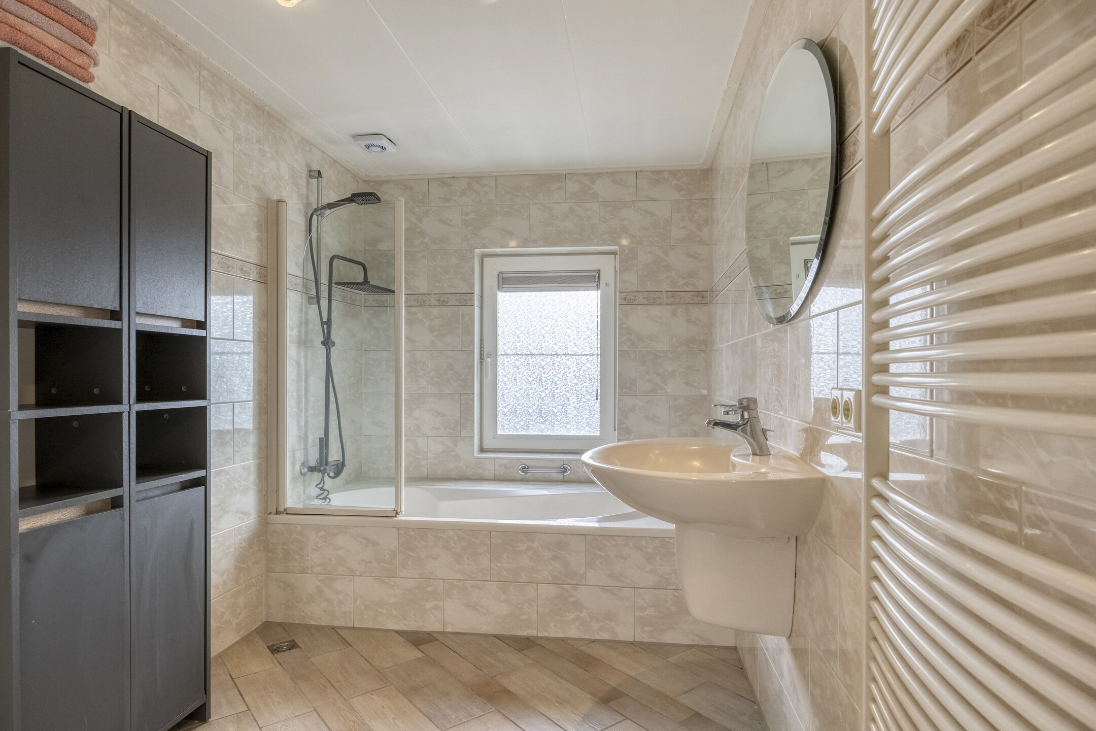 Op de eerste verdieping bevinden zich drie slaapkamers, alle van een prettig en praktisch formaat. De badkamer ligt aan de achterzijde van de woning en is compleet ingericht met een ligbad met douchefunctie, een toilet, een wastafel en een designradiator. De slaapkamer aan de voorzijde beschikt over een vaste trap naar de tweede verdieping, waardoor deze kamer tevens fungeert als doorgang naar de zolder.
