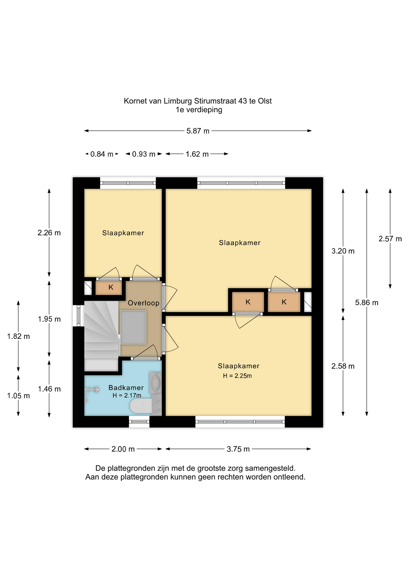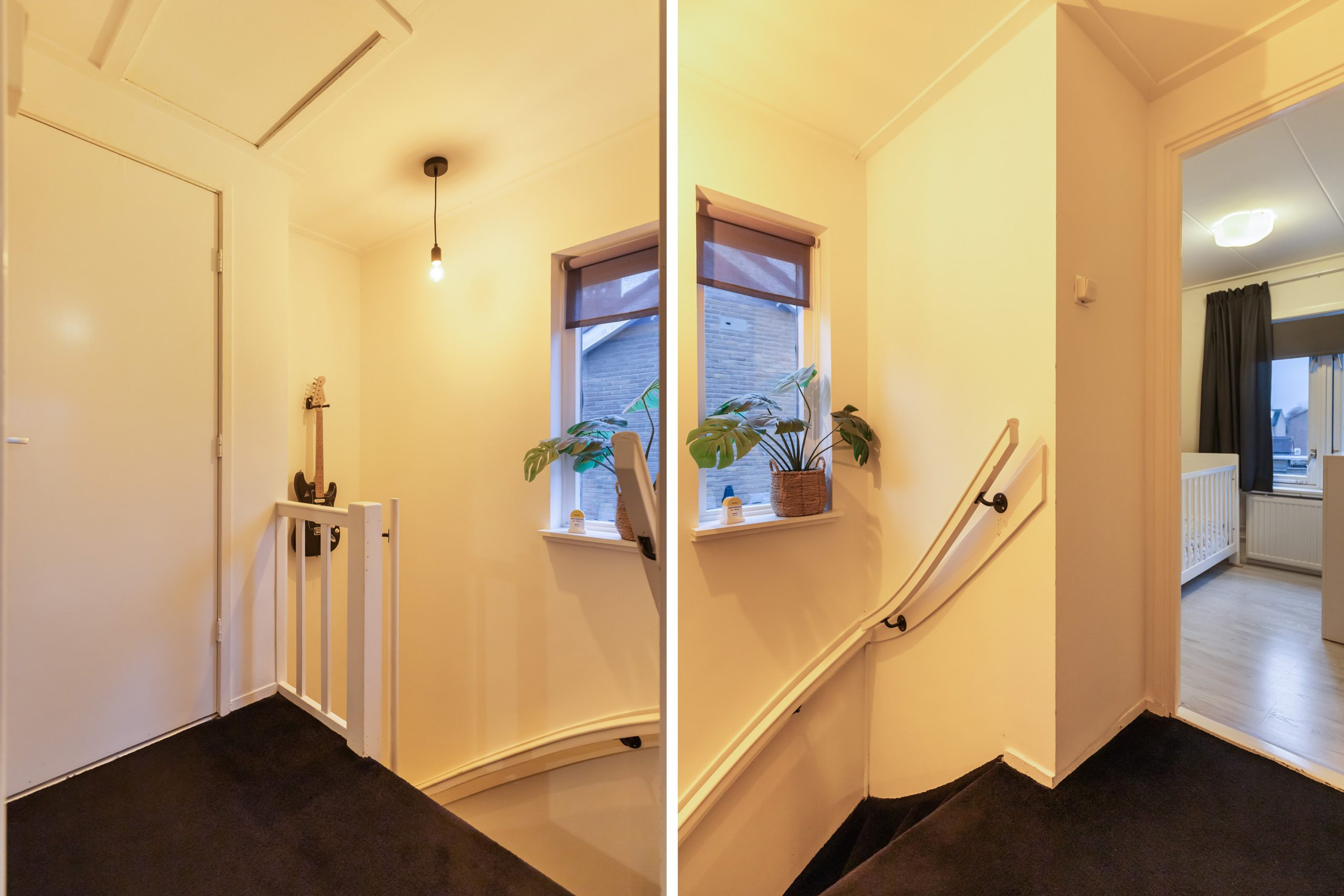 Op de eerste verdieping geeft de overloop toegang tot drie slaapkamers en de keurige badkamer. De grootste slaapkamer ligt aan de voorzijde, samen met de badkamer, terwijl een tweede ruime slaapkamer aan de achterzijde is gesitueerd. Daarnaast is er een wat kleinere slaapkamer aan de achterzijde. Alle slaapkamers zijn voorzien van praktische vaste kasten. Vanuit de overloop is tevens de vliering bereikbaar via een losse ladder.